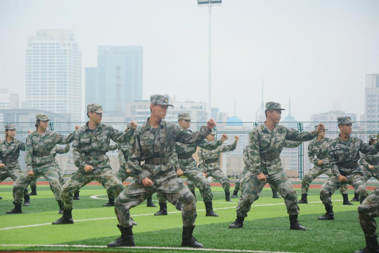 军体拳动作刚劲有力、气势如虹,彰显出学生教官坚韧不拔的意志和英勇顽强的战斗作风。在战伤救护中,学生教官以专业的技术展示了对身体各处战伤的止血、包扎与固定,动作规范,技术专业。