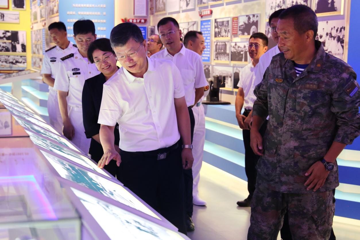 座谈会后,李海洋一行先后参观了海军驻连某部院史馆和模拟航海实验室。
