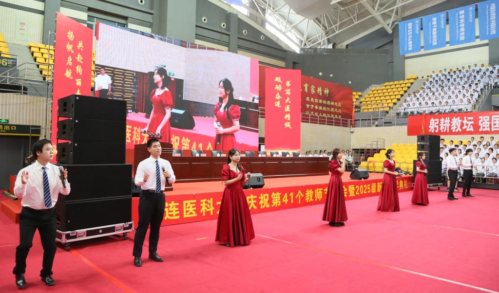 大连医科大学庆祝第41个教师节大会暨2025级新生开学典礼在全体师生合唱《大医,我的荣光》校歌声里圆满落幕。