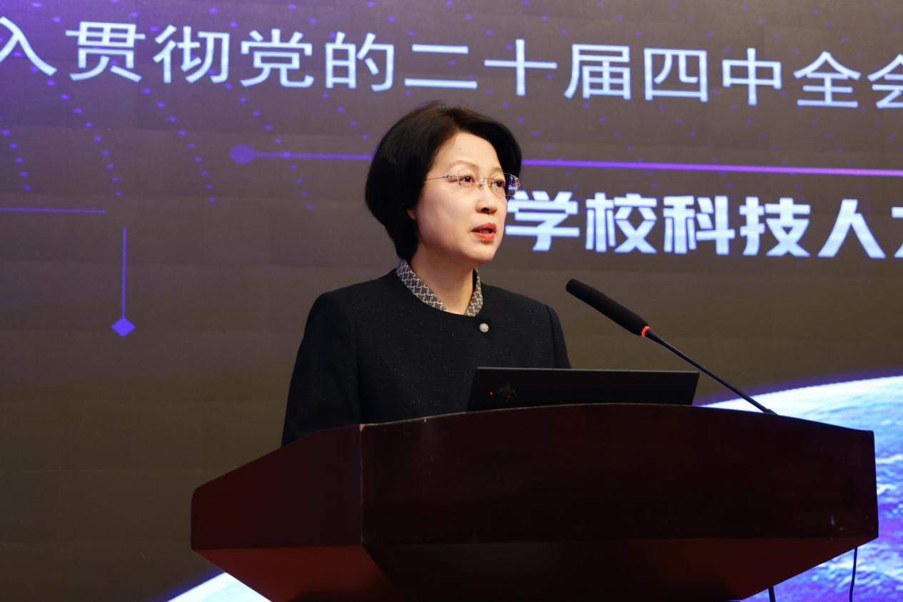 刘莹围绕“科技赋能”与“人才引领”两大维度,对学校近期出台的科技、人才政策进行了系统解读,并详细介绍了“有组织科研”项目提升计划、科技成果转化激励、学术创新氛围营造以及科研共享平台建设等举措,系统阐述了高层次人才引育管理办法、创新团队支持计划、伯乐奖激励机制、博士后待遇提升与职称评审绿色通道等系列创新政策,为学校科技、人才发展提供了强有力的政策遵循。